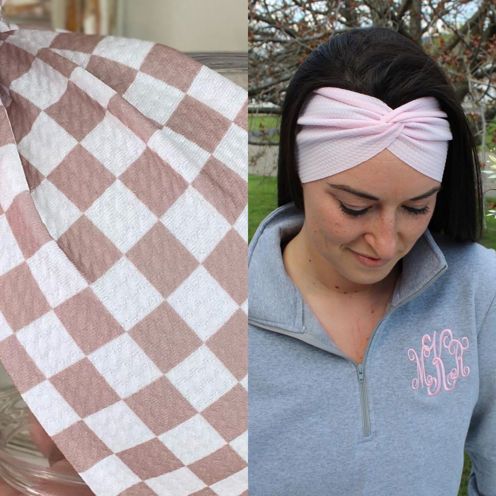 Cream/Beige Checkerboard Adult Twist Headband
