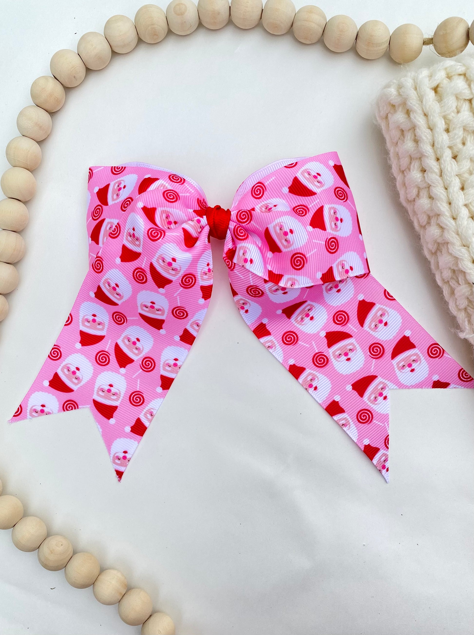Pink Santa Ribbon Cheer Bow